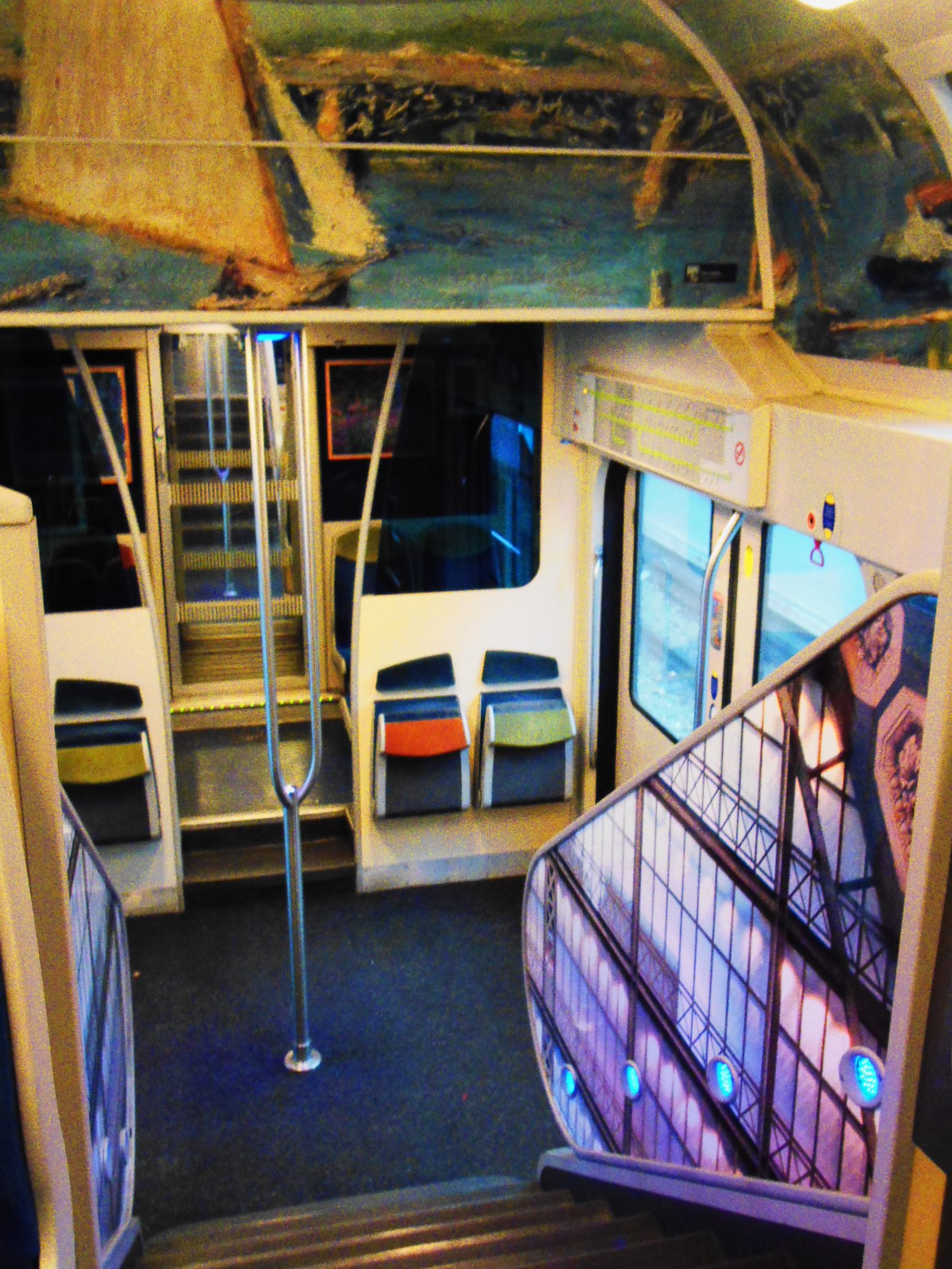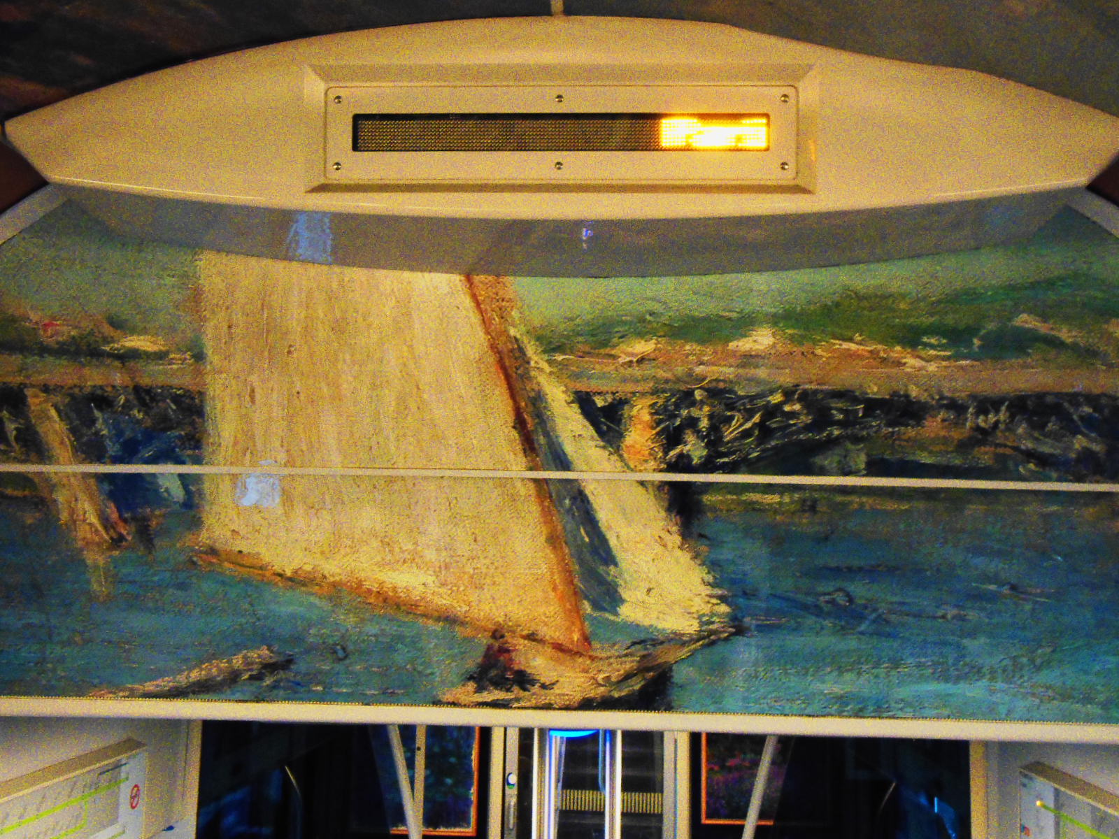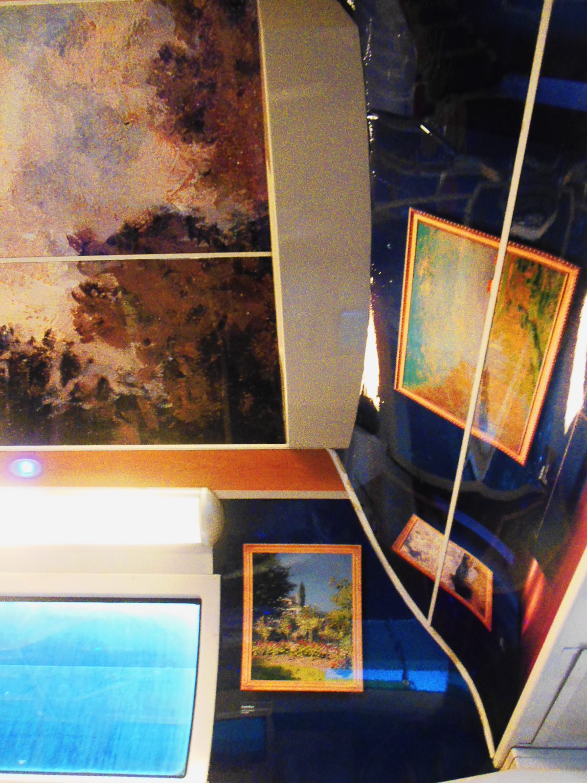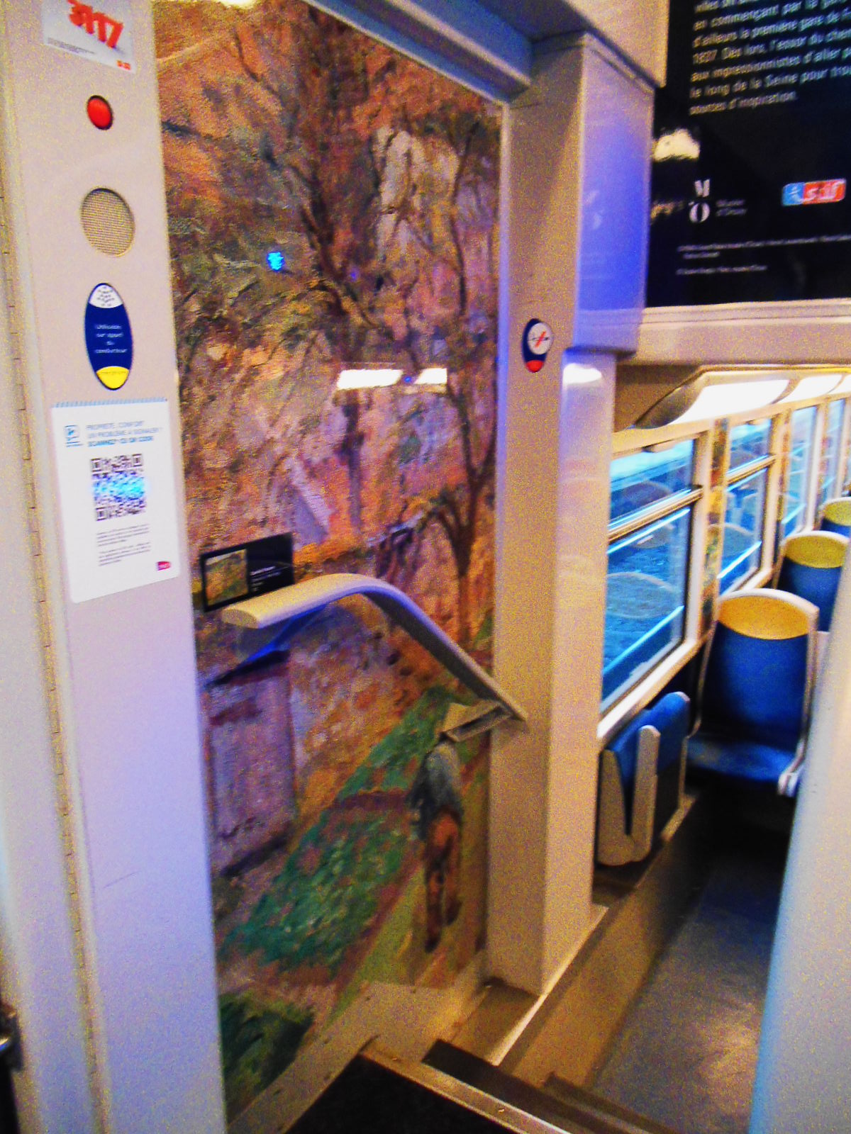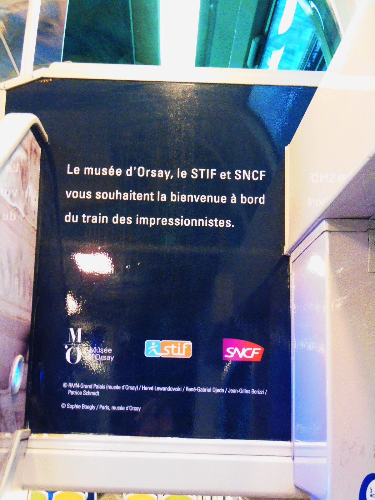 A w pociągu niespodzianka. Podczas, gdy w Saint Denis trwała wielka, niebezpieczna strzelanina, ja podróżowałam do Paryża w otoczeniu piękna impresjonistycznych dzieł sztuki… Kwiaty, kobiety z kolorowymi parasolkami, bujna, piękna, kwitnąca natura pod pędzlami najwybitniejszych malarzy… Cały pociąg – ściany, sufit, przejścia, drzwi ozdobione twórczością Moneta, Pissarra, Renoira…