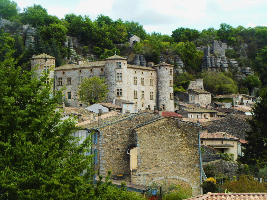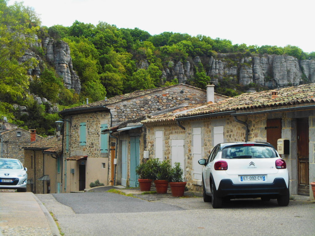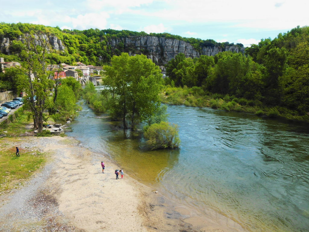 Ale zacznijmy od początku. Naszą wycieczkę rozpoczęliśmy od miasteczka Vogüé , które wpisane jest na listę najpiękniejszych francuskich miejscowości. To malutka, cicha miejscowość z górującym nad nią zamkiem i pięknym położeniem nad rzeką Ardèche. Warto zaparkować tuż obok mostu, skąd rozpościera się widok z jednej strony na miasteczko, z drugiej na skały, a w dole można podziwiać nabrzeże rzeki. Tuż przy drodze znajdują się urokliwe restauracje z przeszklonymi tarasami, skąd rozpościera się niezwykły widok na kanion. Nie wiem, jak jest w sezonie, ale jeszcze w kwietniu można tu naprawdę odpocząć. A potem… ruszać dalej, bo czeka na Was mnóstwo niezapomnianych wrażeń…