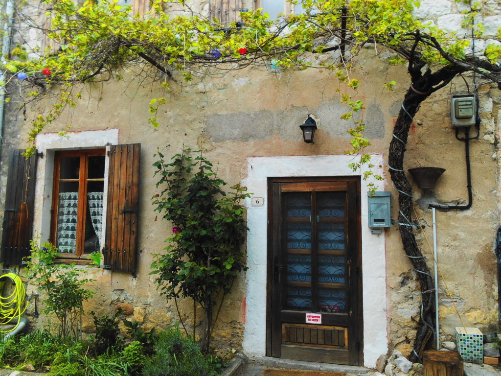 Naszą wycieczkę zakończyliśmy w malutkim średniowiecznym miasteczku Aiguèze, pięknie położonym na skale z widokiem na rzekę Ardèche oraz słynną górę Mont Ventoux na dalekim horyzoncie. Urzekły nas tu małe place z kamiennymi domkami, pełnymi kolorowych detali, kotów i zabawnych dekoracji, kościół z anielskimi i maryjnymi freskami na fasadzie oraz oryginalny hotel w ruinach dawnego zamku. Przed sezonem było tu tak pusto i cicho, jakbyśy trafili do jakiegoś totalnie zapomnianego miejsca na świecie, co potęgowało urok tego miasteczka.
