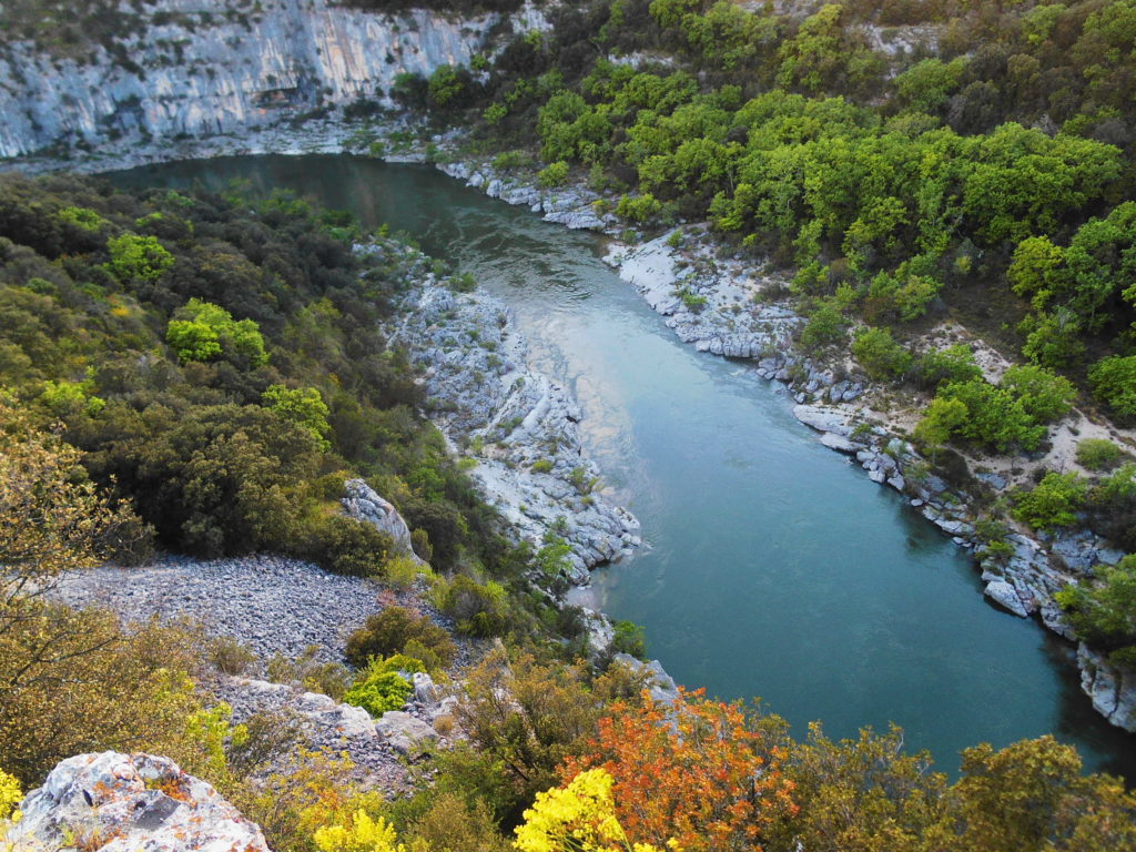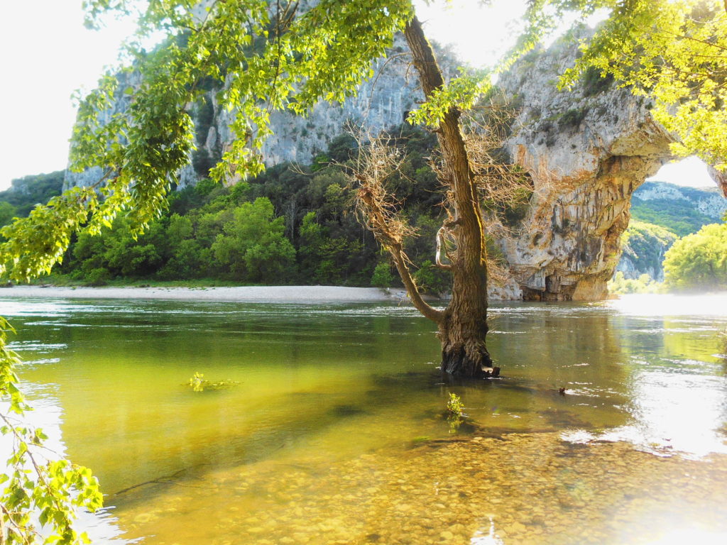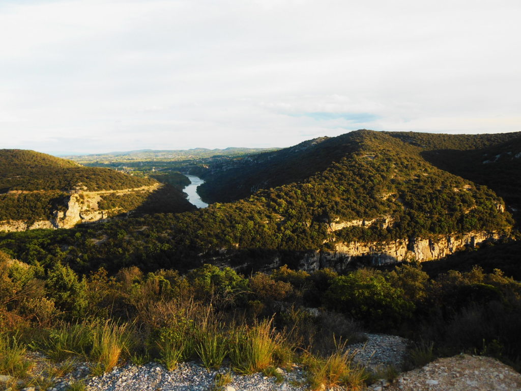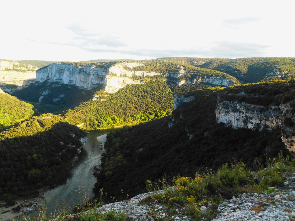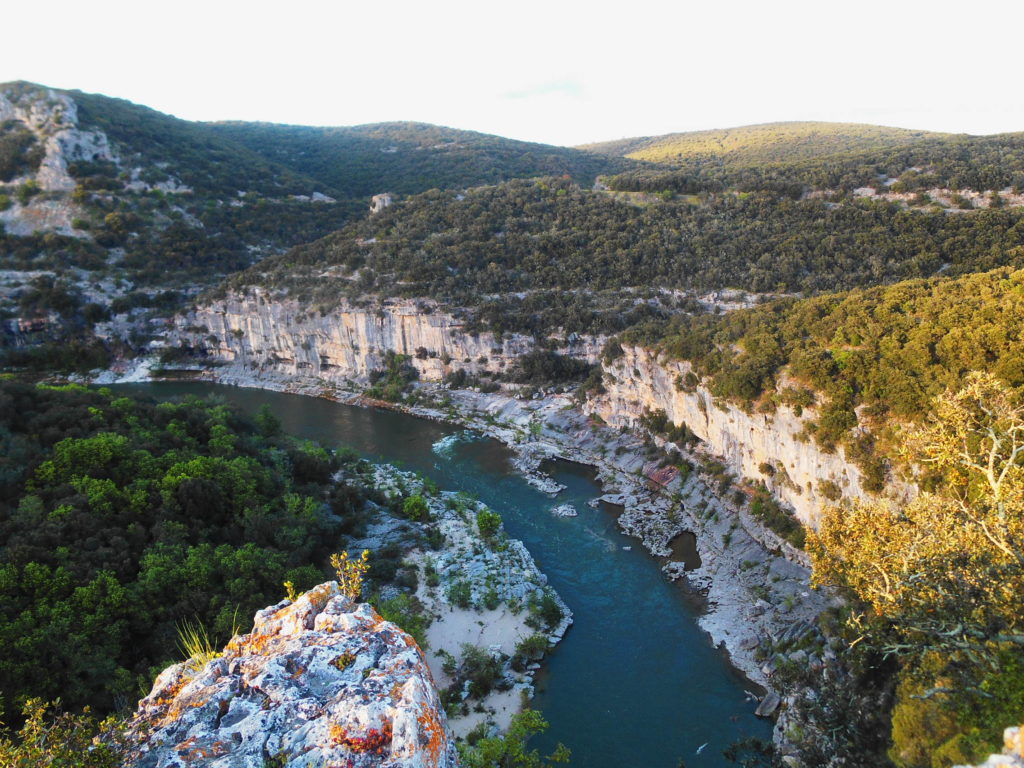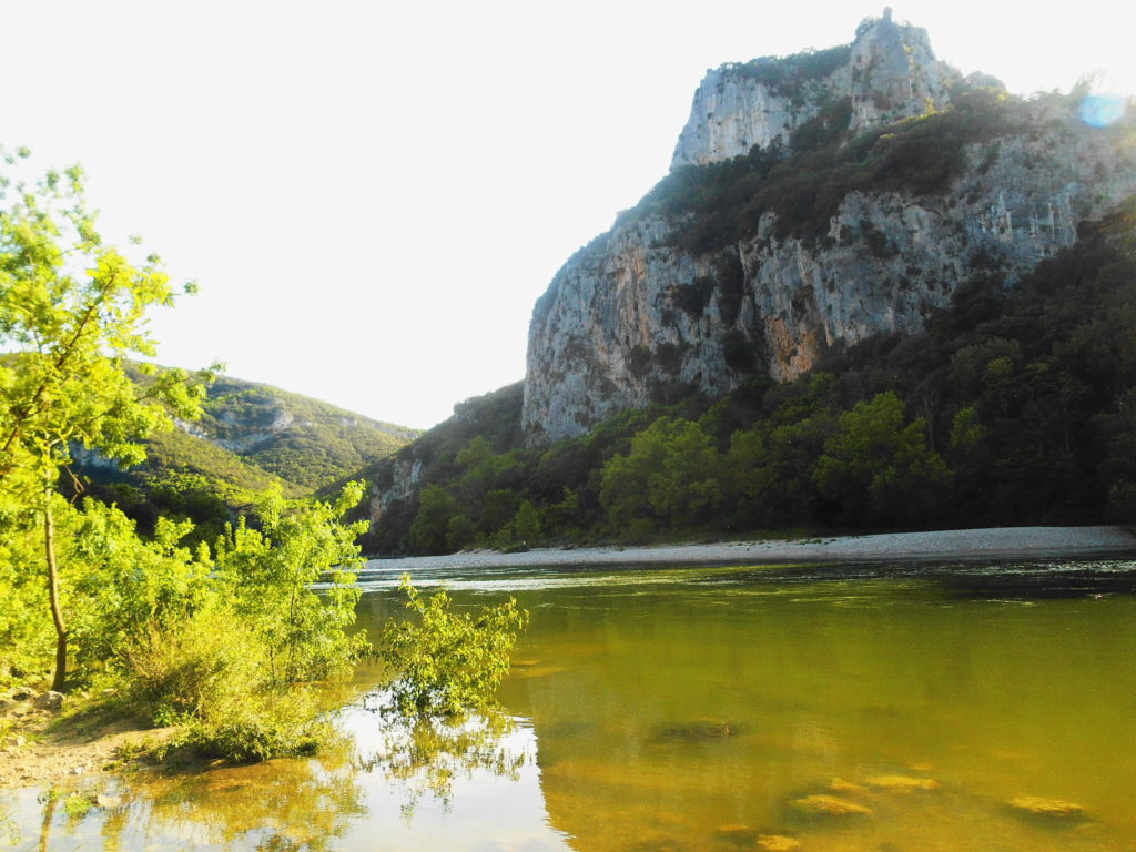 W górskich terenach Ardèche zdążyłam się już zakochać podczas kilku naszych wcześniejszych wypadów z Lyonu. Dzikość tych gór, roślinność, widoki, winnice składają się w niezapomniany pejzaż. Gdy po raz pierwszy w życiu o świcie stanęłam nad otuloną mgłą przepaścią Kanionu Verdon, byłam pewna, że jest to najpiękniejsze miejsce, jakie widziałam we Francji. Ale teraz, gdy z każdym przejechanym kilometrem roztaczały się przede mną coraz to piękniejsze panoramy, dzikie kozy przebiegały nam drogę, niezwykłe rzeźby skalne zapraszały do odwiedzenia kolejnych jaskiń, gdy odkryłam plażę pod Pont d’Arc… teraz już nie byłam taka pewna…