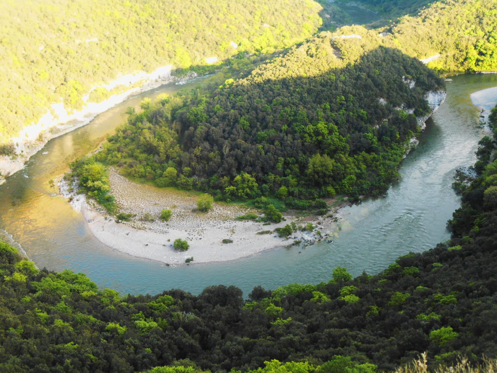 My poruszaliśmy się głównie samochodem i główną drogą wiodącą przez przełęcze kanionu. Na tej trasie znajduje się aż 11 punktów widokowych (tzw. Les belvédères des Gorge de l’Ardèche) i zapewniam Was, że warto zatrzymać się praktycznie przy każdym z nich. Jak dla mnie najpiękniejszy i absolutnie nie do pominięcia jest Balcon Les Templiers. Rzeka tworzy tu przepiękne zakole, otoczone ścianami skalnymi o niesamowitej rzeźbie i kolorach, zwłaszcza w promieniach zachodzącego słońca.