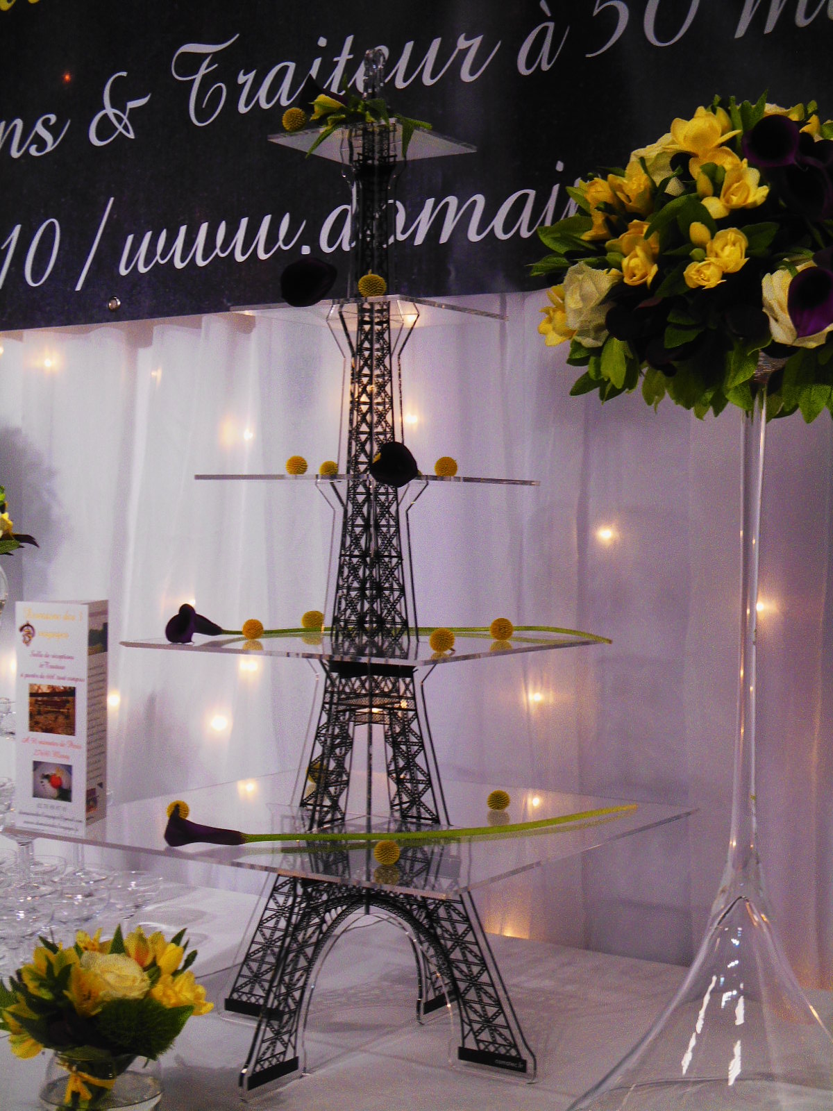 Dekoracje. Przyznam się szczerze, że liczyłam na coś bardziej ekstrawaganckiego, ale było czym nacieszyć oko. Szklana patera z nóżką w kształcie Wieży Eiffla zdobyła moje serce.